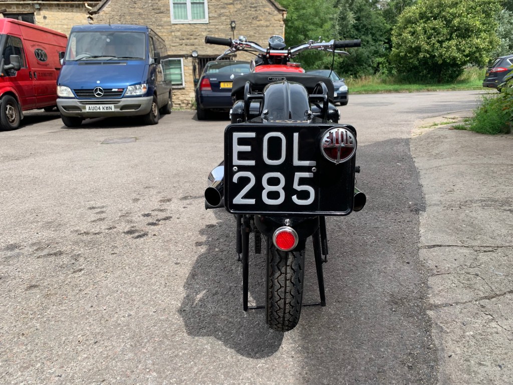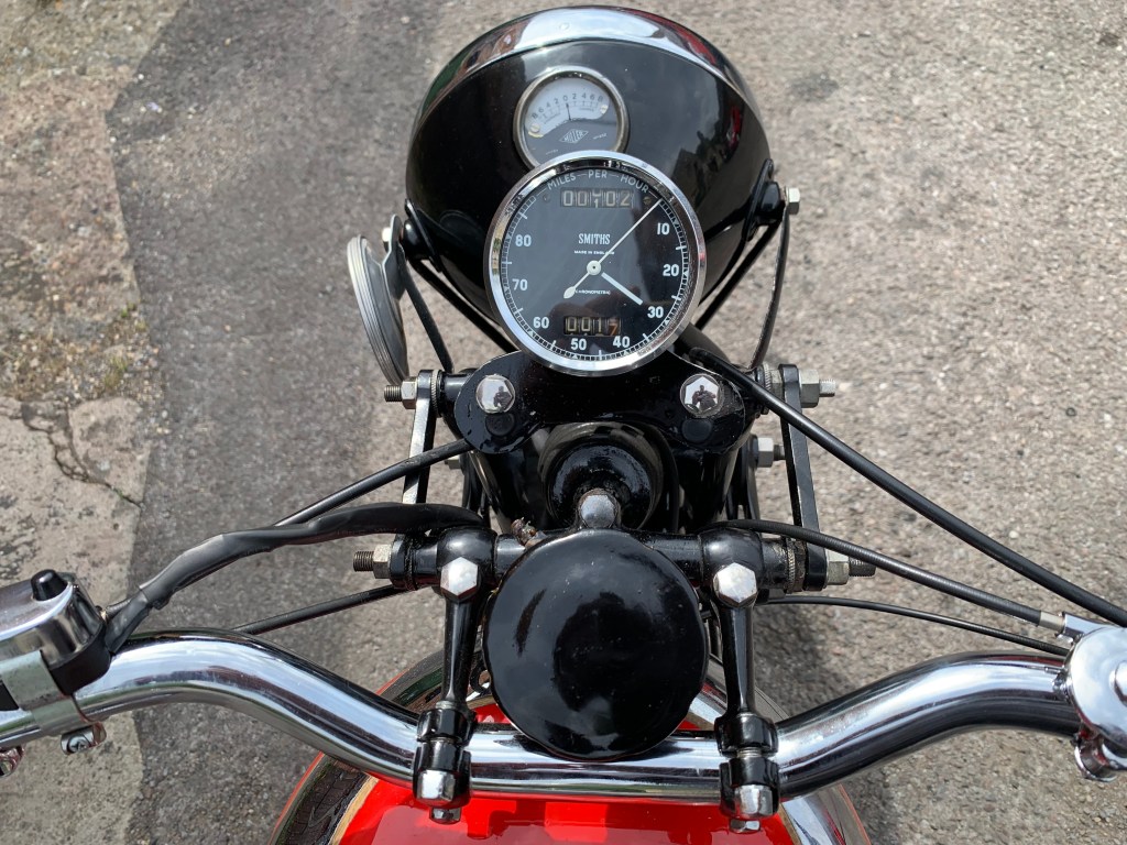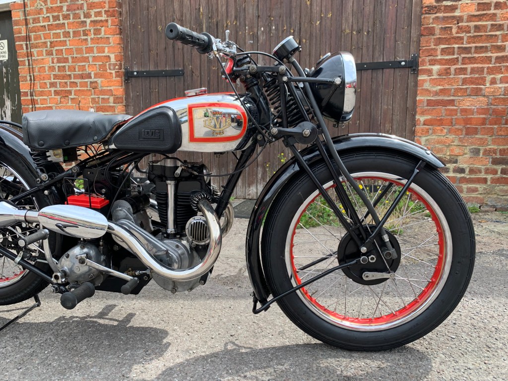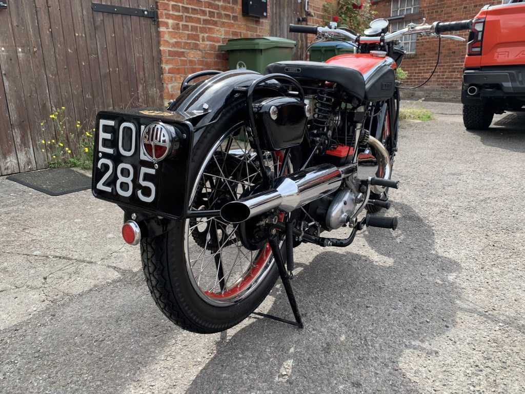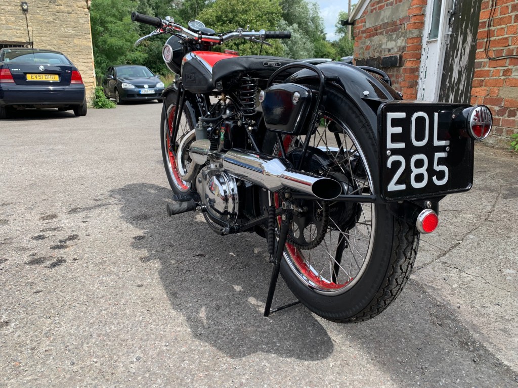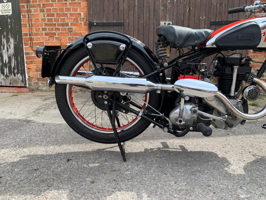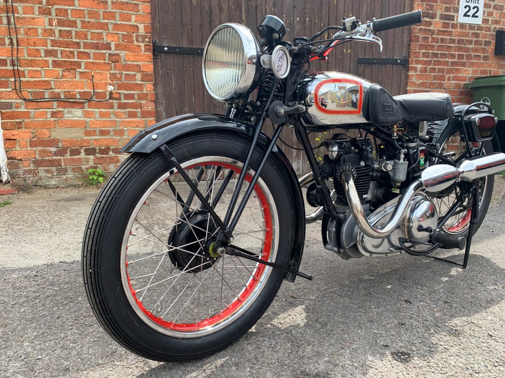 | LEVIS B SPECIAL PRICE: £10,000 YEAR: 1938 MOT: EXEMPT MILES: 102 miles OWNERS: 2 • A rare classic and handmade bike with all the history and paperwork • Very low mileage • 250cc 2 stroke engine • Pivoted mounted H.P heavy 4 speed gearbox • Been well kept and maintained in a dry environment • Perfect for a collector This example of the very rare 247cc B Special offered features the enclosed valve gear introduced for the 1938 season and is presented to a very high standard throughout having been the subject of a well executed restoration. It is presented with a red and chromium plated fuel tank lined in gold. The chromium plated rims are painted to match with the rest of the paintwork being black. |