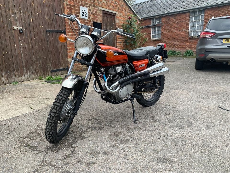| NOW SOLD YEAR: 1974 MOT: EXEMPT MILES: 10,353 miles OWNERS: 3 • A beautiful example of a Japanese twin with scrambler styling • Imported from the US with its original paperwork of registration and manufacturing details • Very rare to find in the UK • Electric starter fitted along with the original kickstart • Recently painted and powder coated. Serviced and detailed by us ready for its new owner • Registered in the UK in 2015 with all the paperwork present |