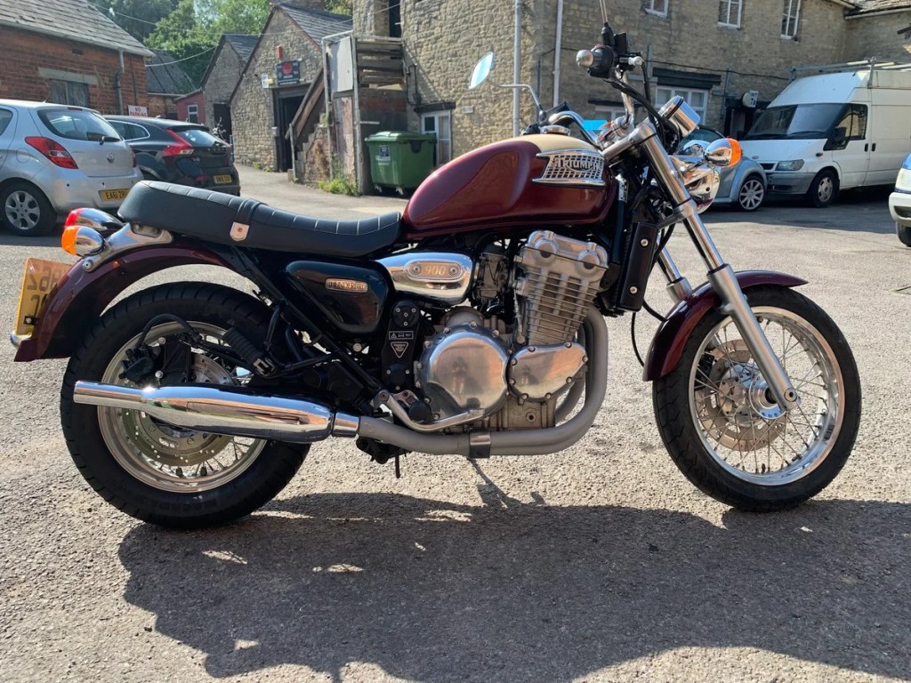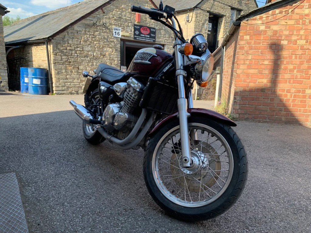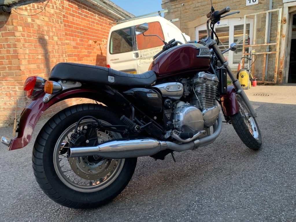 | 1996 Triumph 900 Thunderbird YEAR: 1996 MOT: OCT 2026 MILES: 25, 507 miles OWNERS: 5 • A great example of a classic Triumph in the colour burgundy • Recently serviced by us, with a new radiator and bulbs all round • Well looked after by the former owners • Ready to ride away! £2000.00 ONO |
